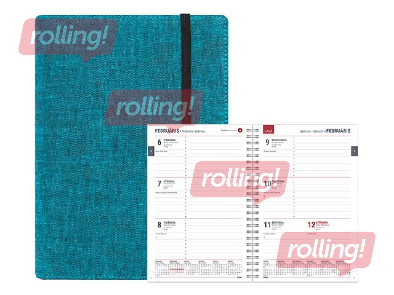Apraksts: Visās A5 formāta dienasgrāmatās ir tabulas kalendārs, gada plāns, nedēļu numerācija, valsts svētku un atzīmējamās dienas, karogu dienas, vārda dienas, 38 citu valstu svētku dienas, norādīta pāreja uz vasaras un ziemas laiku, gadalaiku sākums, saullēkta un saulrieta laiki, mēness fāzes, zodiaka zīmju maiņas dienas, kontaktu un piezīmju lapas.