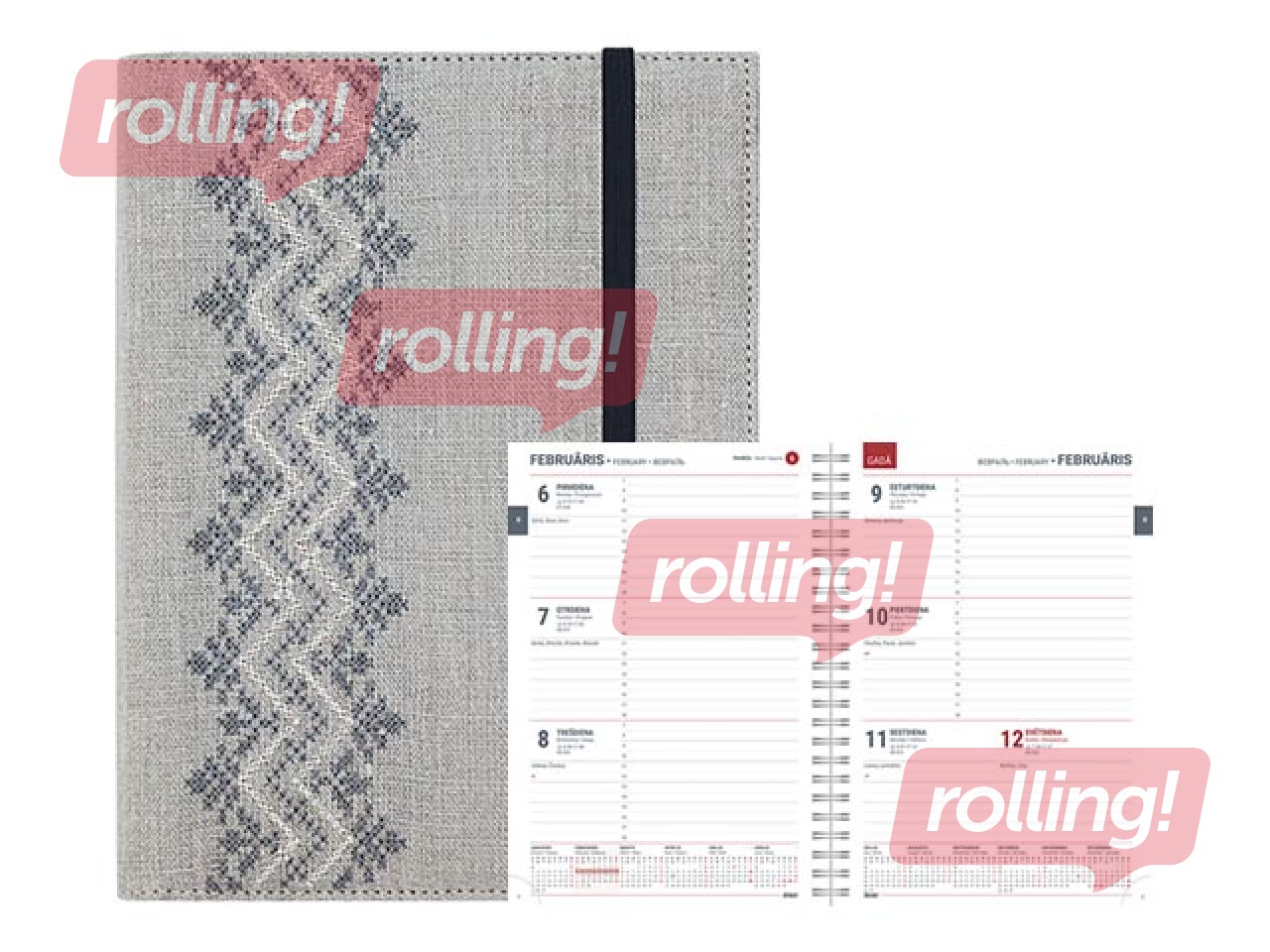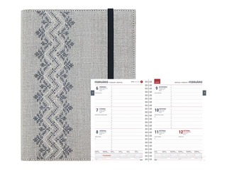 Papildinformācija: Vāki no 100% lina ar etnogrāfisku rakstu, ar spirāli, perforēti noplēšami lapu stūrīši.