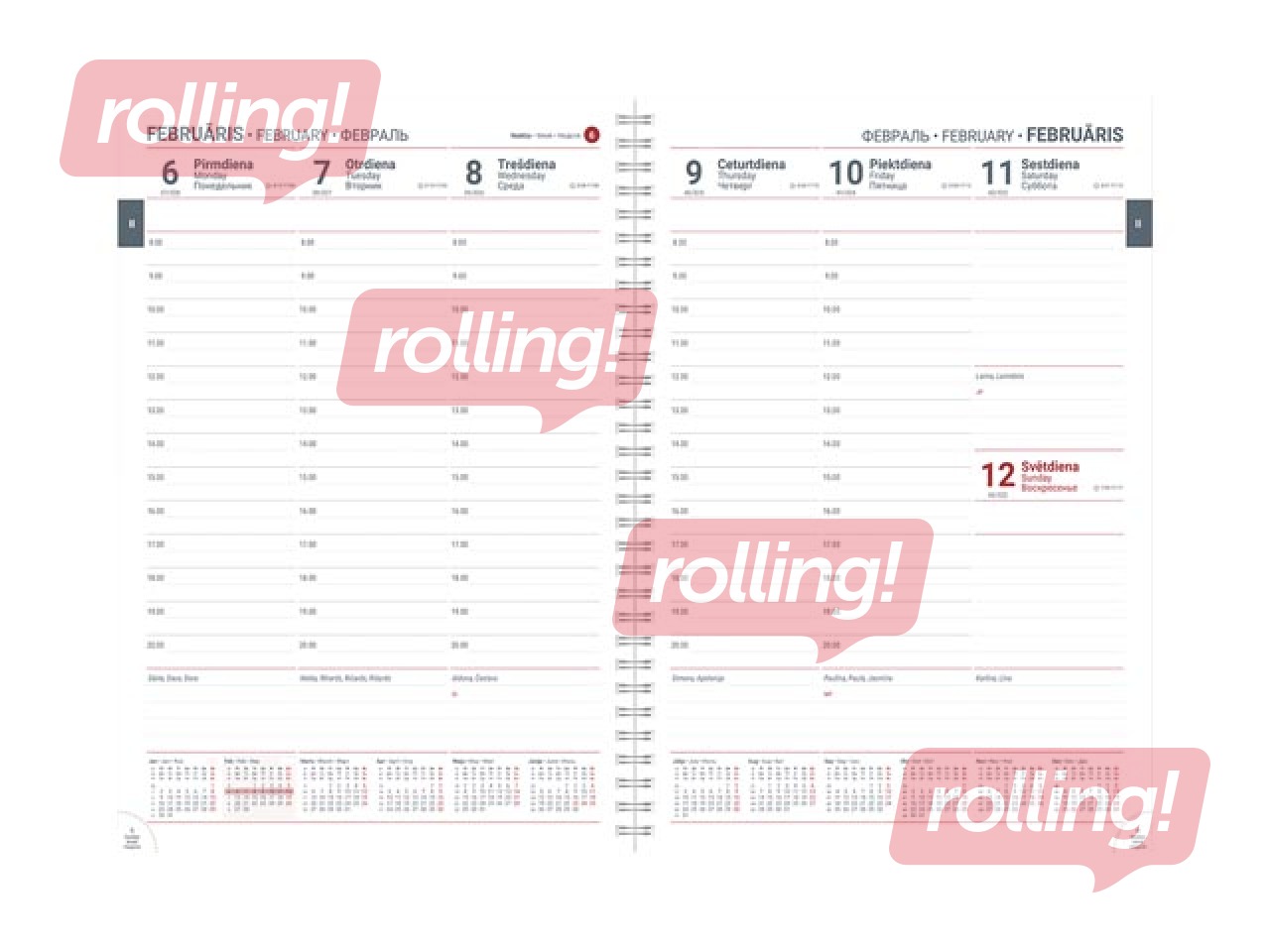 Visos plānotājos VIP ir tabulas kalendārs, gada plāns, viena nedēļa atvērumā, laiks no 08:00 līdz 20:00, nedēļu numerācija, valsts svētku un atzīmējamās dienas, karogu dienas, vārda dienas, 38 citu valstu svētku dienas, norādīta pāreja uz vasaras un ziemas laiku, gadalaiku sākums, saullēkta un saulrieta laiki, mēness fāzes, zodiaka zīmju maiņas dienas, kontaktu un piezīmju lapas.