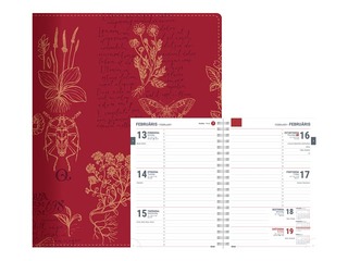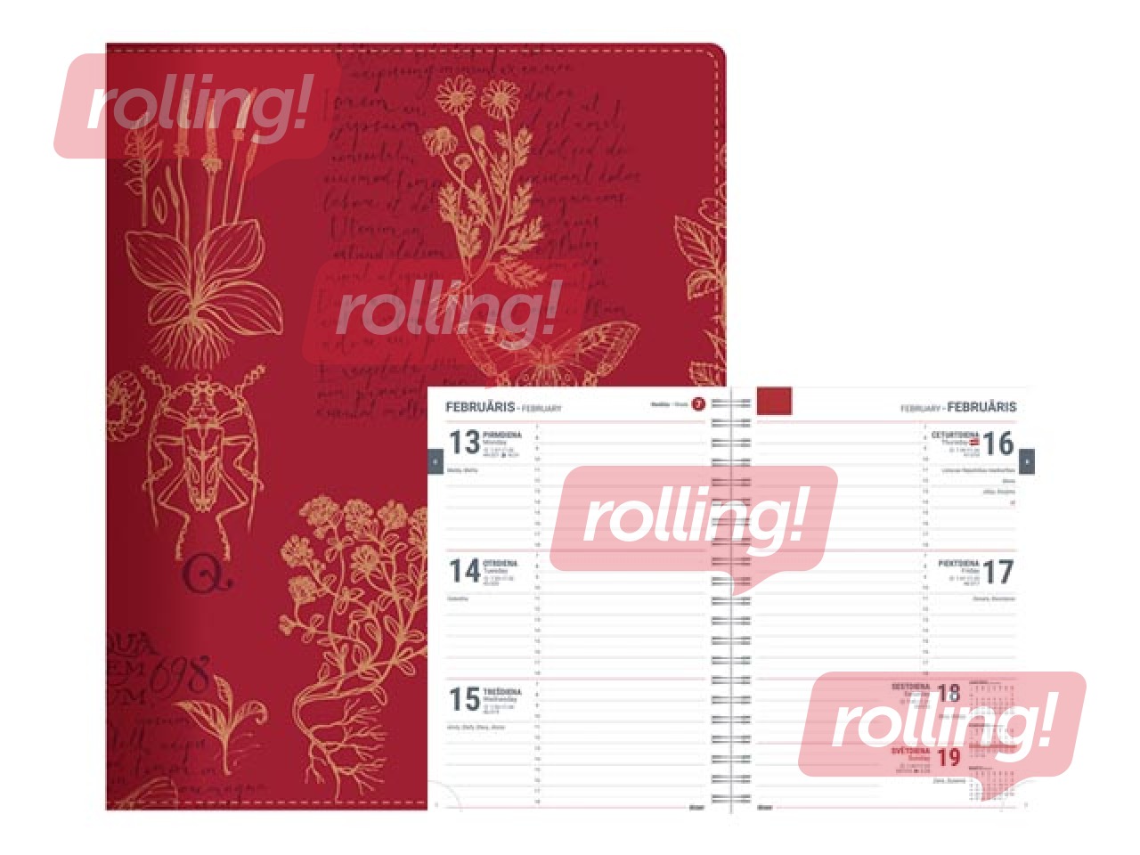 Papildus informācija: Polsterēti mākslīgās ādas vāki ar nošūtu malu, moderni krāsu un materiālu salikumi, reljefa iespiedums uz vāka, ar spirāli, perforēti noplēšami lapu stūrīši