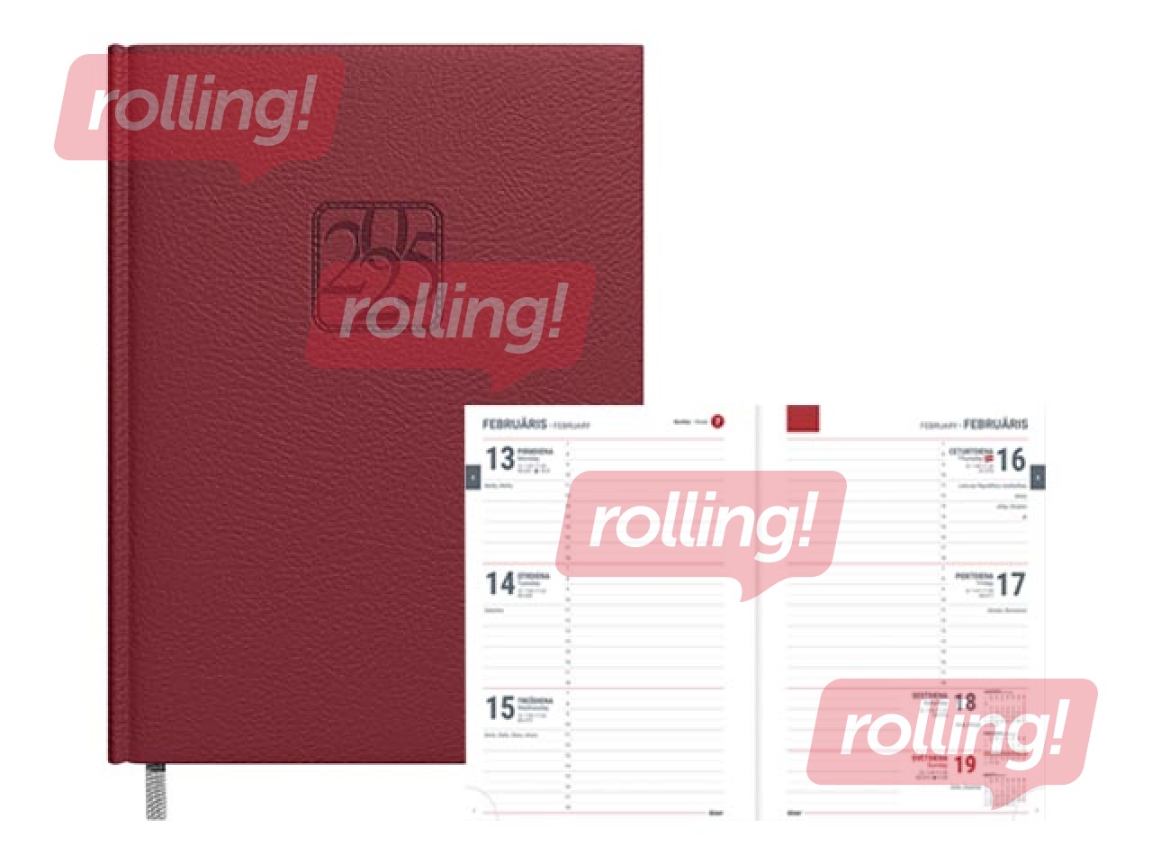 Papildus informācija: Polsterēti mākslīgās ādas vāki, grāmatzīme, cietais sējums, perforēti noplēšami lapu stūrīši.