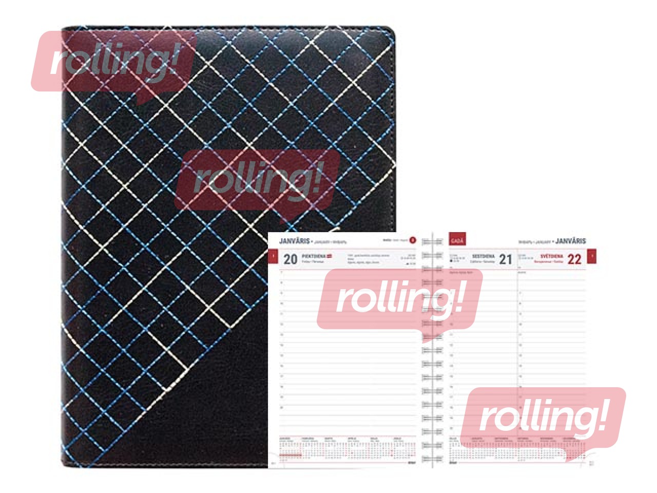 Apraksts: Visās A5 formāta dienasgrāmatās ir tabulas kalendārs, gada plāns, nedēļu numerācija, valsts svētku un atzīmējamās dienas, karogu dienas, vārda dienas, 38 citu valstu svētku dienas, norādīta pāreja uz vasaras un ziemas laiku, gadalaiku sākums, saullēkta un saulrieta laiki, mēness fāzes, zodiaka zīmju maiņas dienas, kontaktu un piezīmju lapas.