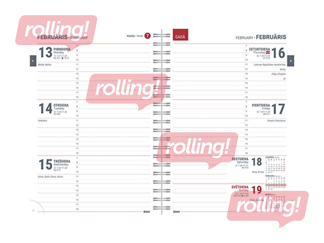 Apraksts: Visos plānotājos TEMPO NEDĒĻA ir tabulas kalendārs, gada plāns, viena nedēļa atvērumā, nedēļu numerācija, valsts svētku un atzīmējamās dienas, karogu dienas, vārda dienas, 38 citu valstu svētku dienas, norādīta pāreja uz vasaras un ziemas laiku, gadalaiku sākums, saullēkta un saulrieta laiki, mēness fāzes, zodiaka zīmju maiņas dienas, svarīgi telefona numuri, attālumu tabula, tālsarunu kodi, pasaules laiki, izmēru un mērvienību tabulas, kontaktu un piezīmju lapas.