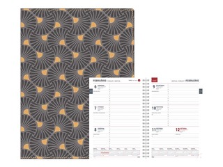 Papildinformācija: Polsterēti mākslīgās ādas vāki ar nošūtu malu, moderni krāsu un materiālu salikumi, reljefa iespiedums uz vāka, telefongrāmatiņa, karte, ar spirāli, perforēti noplēšami lapu stūrīši