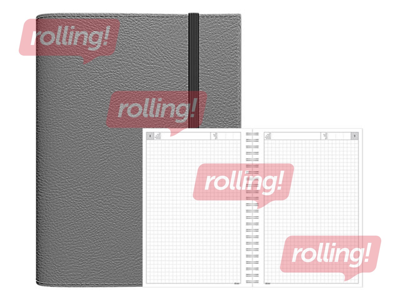 Dienasgrāmata - piezīmju bloks bez datumiem, A5 Flex, rūtiņu, pelēks