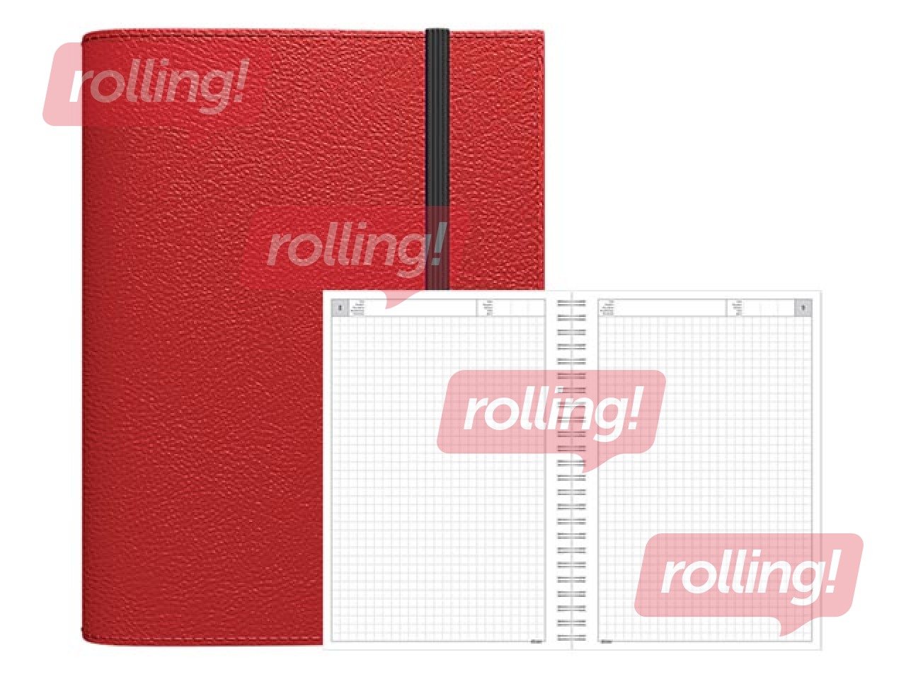Papildus informācija: Elastīgi mākslīgās ādas vāki, ar spirāli, perforētiem noplēšamiem lapu stūrīšiem, ar gumijas aizdari.