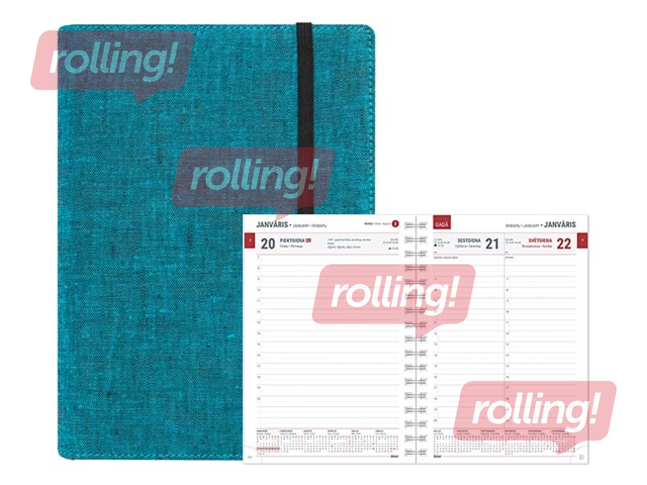 Apraksts: Visās A5 formāta dienasgrāmatās ir tabulas kalendārs, gada plāns, nedēļu numerācija, valsts svētku un atzīmējamās dienas, karogu dienas, vārda dienas, 38 citu valstu svētku dienas, norādīta pāreja uz vasaras un ziemas laiku, gadalaiku sākums, saullēkta un saulrieta laiki, mēness fāzes, zodiaka zīmju maiņas dienas, kontaktu un piezīmju lapas.