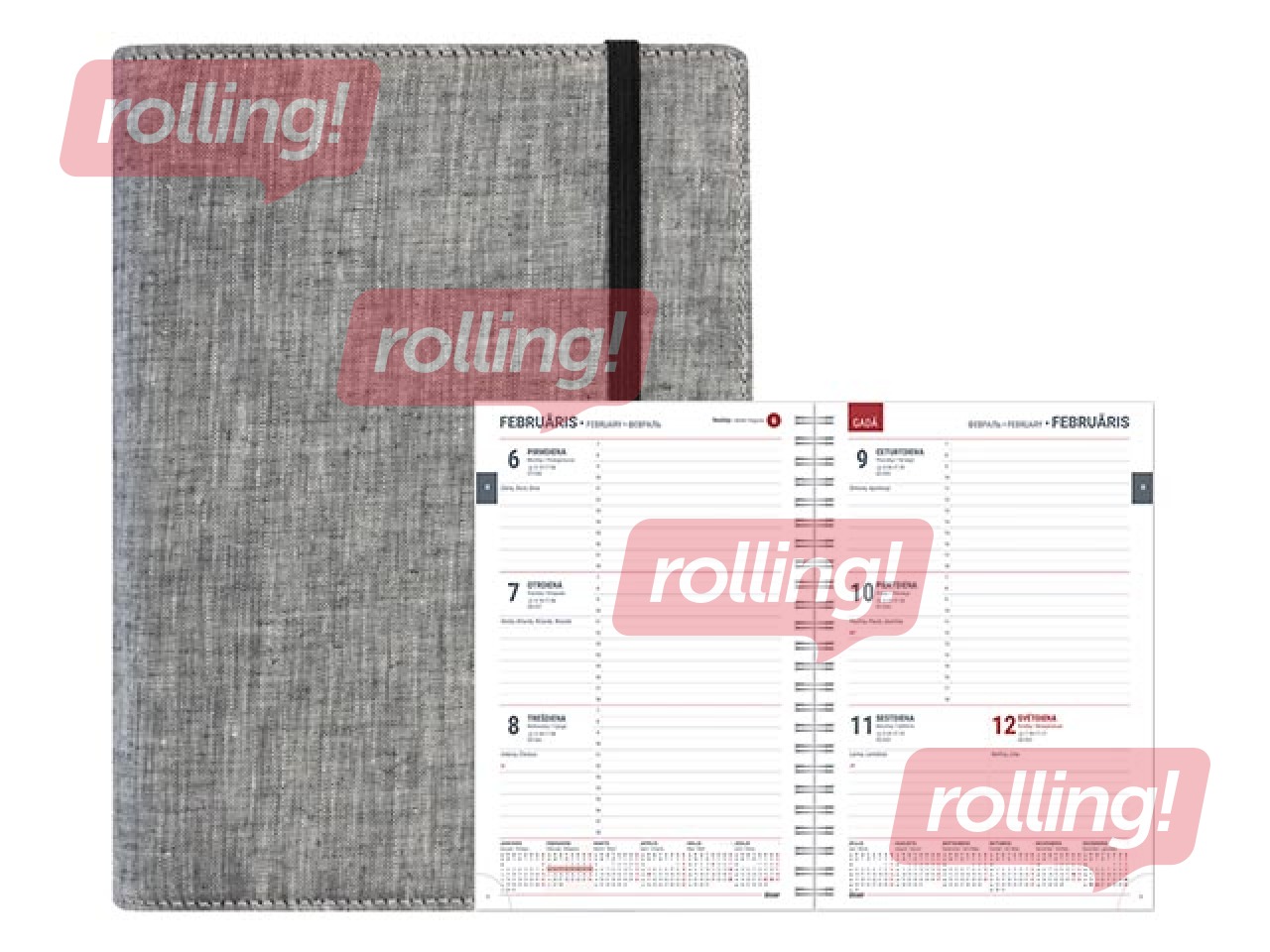 Dienasgrāmata Spirex Linen, A5, gaiši pelēka