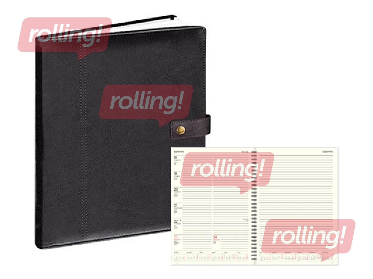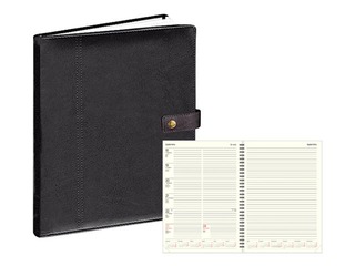 Viena nedēļa atvērumā + vieta piezīmēm. FSC sertificēts tonēnts papīrs, spirāle. Polsterēti mākslīgās ādas vāki.
