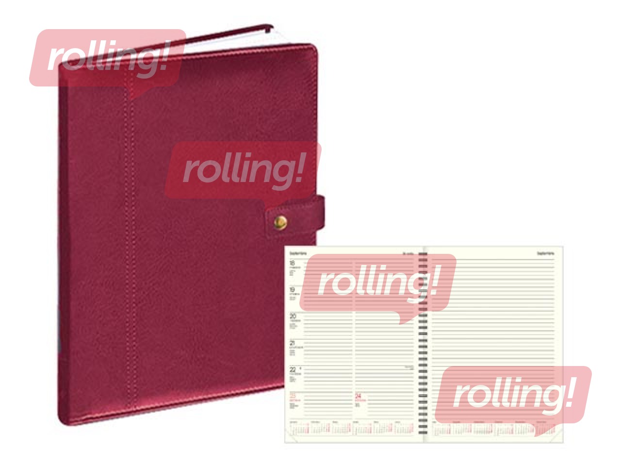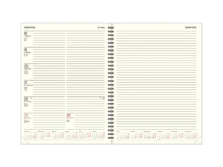 Viena nedēļa atvērumā + vieta piezīmēm. FSC sertificēts tonēnts papīrs, spirāle. Polsterēti mākslīgās ādas vāki.