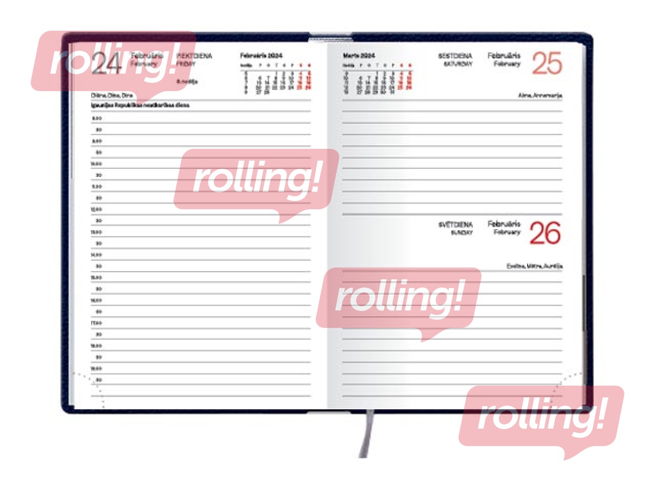 Apdare: FSC sertificēts papīrs, stūru perforācija, grāmatzīme, balacron materiālam gadskaitļa uzspiedums uz muguriņas, Latvijas karte pēclapā, cieti basis vāki.