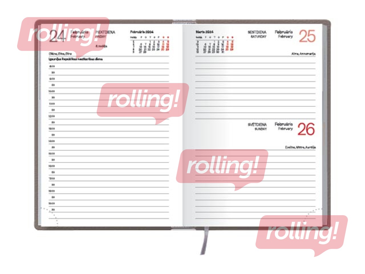 Apdare: FSC sertificēts papīrs, stūru perforācija, grāmatzīme, balacron materiālam gadskaitļa uzspiedums uz muguriņas, Latvijas karte pēclapā, cieti basis vāki.