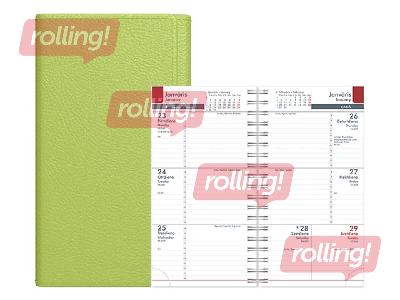 Kabatas kalendārs ar nedēļas atvērumu.
