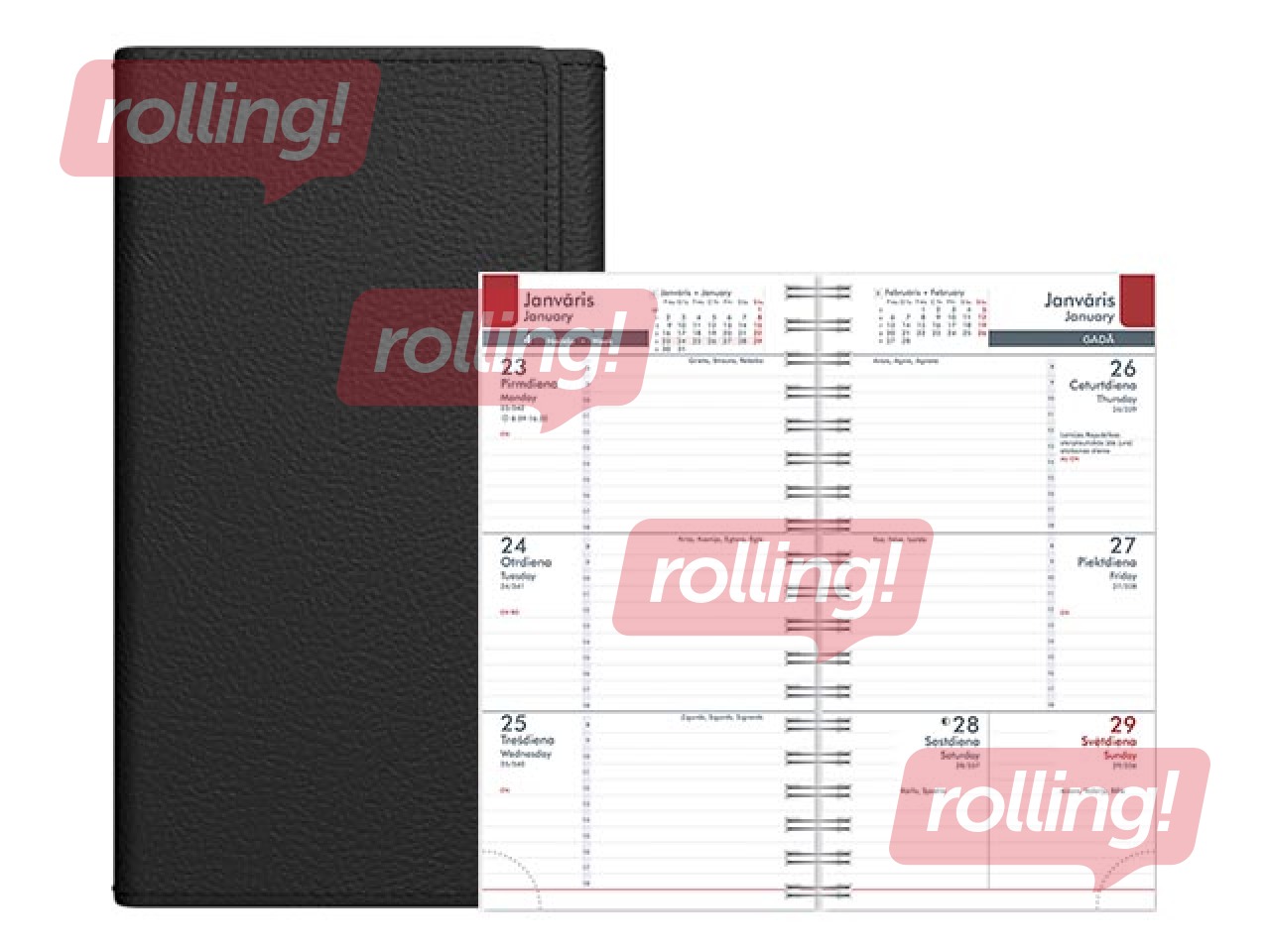 Kabatas kalendārs ar nedēļas atvērumu.