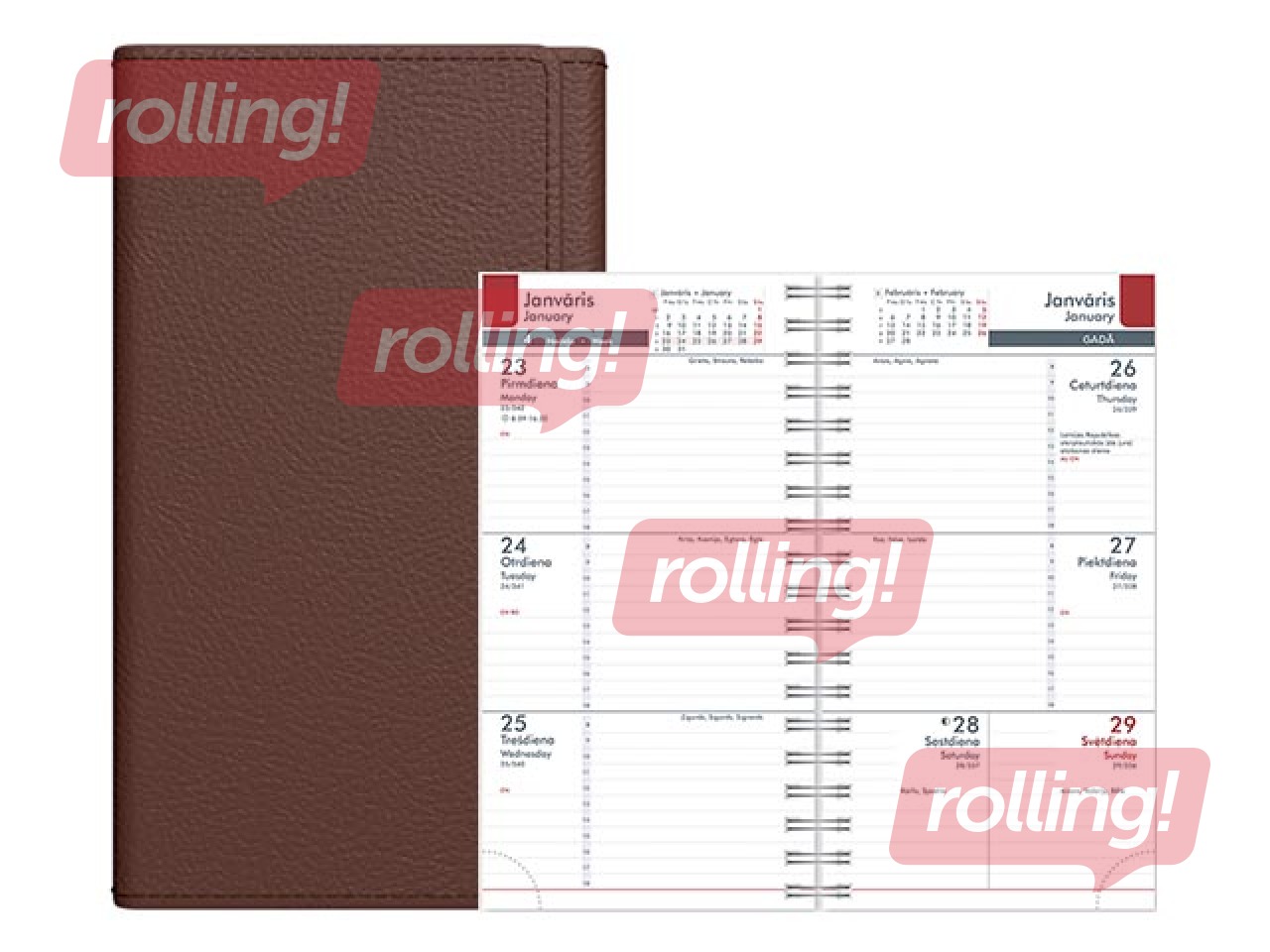 Kabatas kalendārs Midiplan, mākslīgā āda, tumši brūns