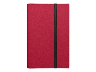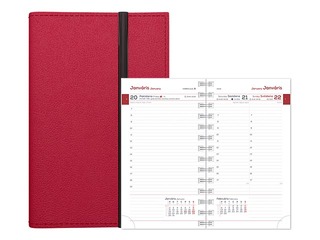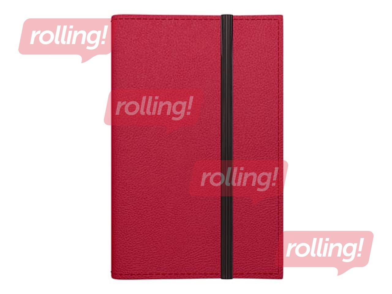 Elastīgi mākslīgās ādas vāki, gumijas aizdare, vāku iekšpusē kabatas un blociņš pierakstiem, ar spirāli, perforēti noplēšami lapu stūrīši.