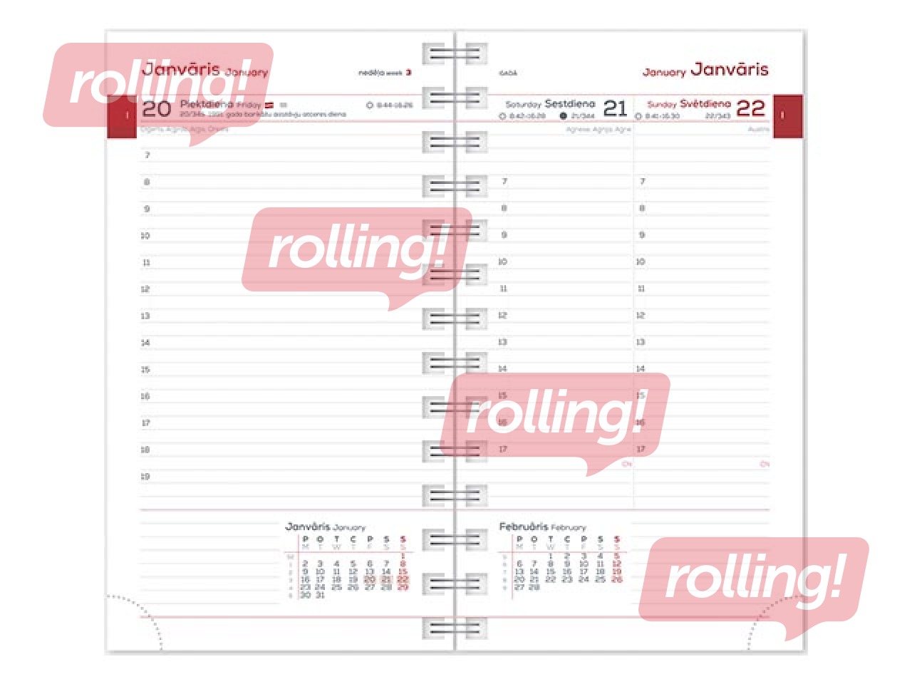 Visos plānotajos MIDI ir tabulas kalendārs, gada plāns, nedēļu numerācija, valsts svētku un atzīmējamās dienas, 38 citu valstu svētku dienas, norādīta pāreja uz vasaras un ziemas laiku, gadalaiku sākums, saullēkta un saulrieta laiki, mēness fāzes, zodiaka zīmju maiņas dienas, pilsētu un valstu telefonu kodi, attālumu tabula, Eiropas Savienības dalībvalstis, pasaules laiki, piezīmju lapas.