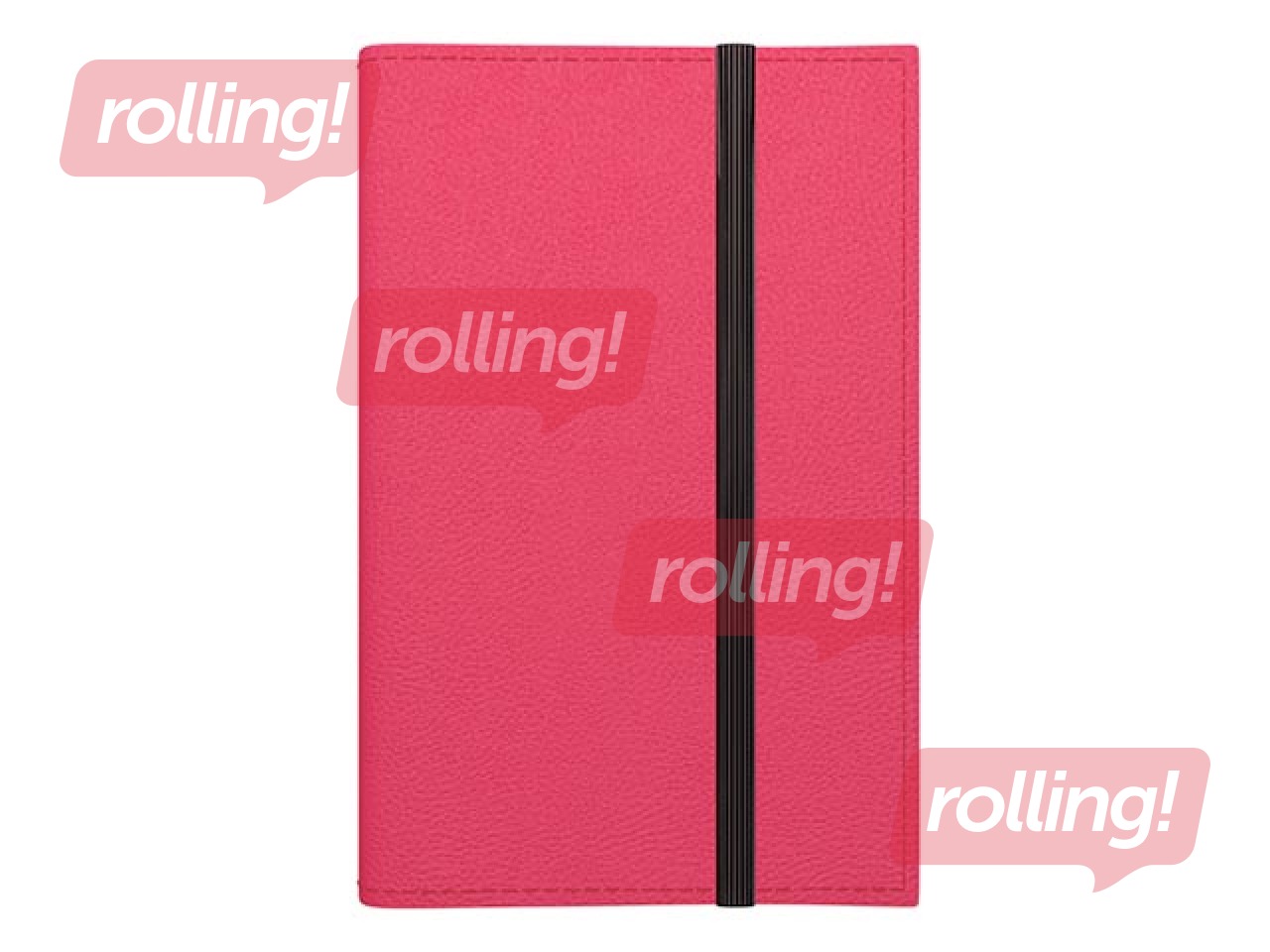 Elastīgi mākslīgās ādas vāki, gumijas aizdare, vāku iekšpusē kabatas un blociņš pierakstiem, ar spirāli, perforēti noplēšami lapu stūrīši.