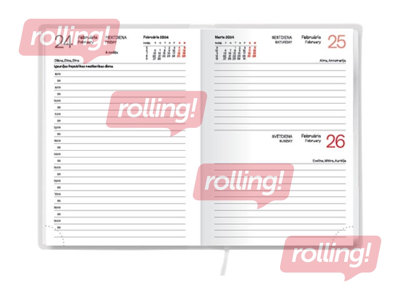 Apdare: FSC sertificēts papīrs, stūru perforācija, grāmatzīme, balacron materiālam gadskaitļa uzspiedums uz muguriņas, Latvijas karte pēclapā, cieti balacron vāki.