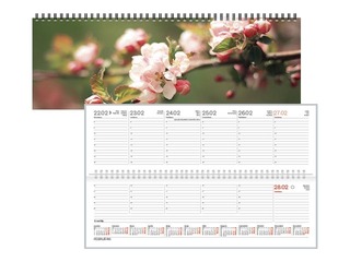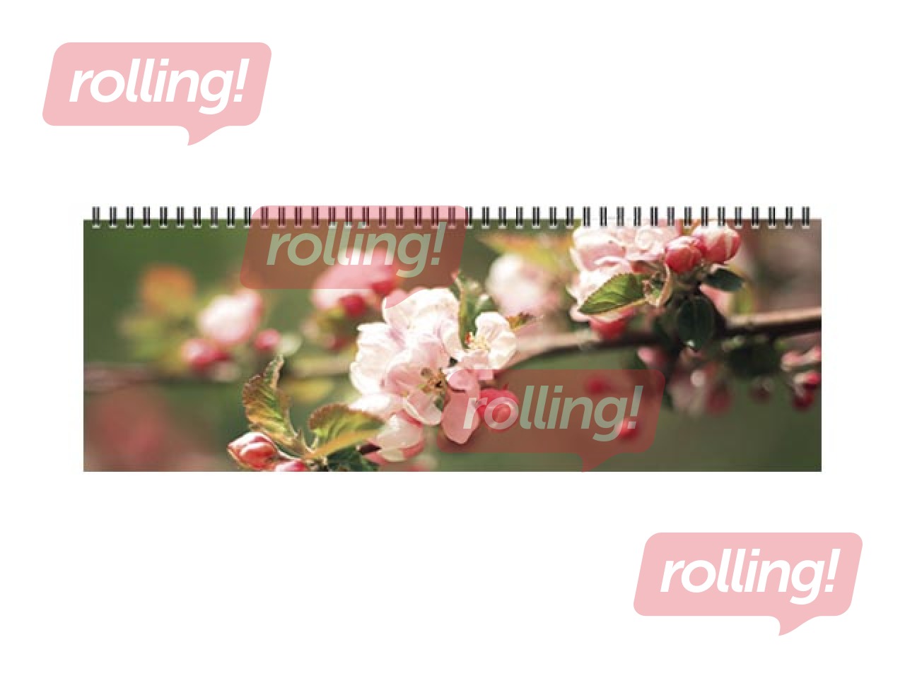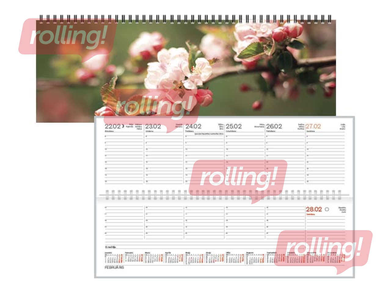 Kalendārs: viena nedēļa atvērumā. Izmērs: 300 mm x 100 mm. Apdare: FSC sertificēts papīrs, apdrukāts kartona vāks,