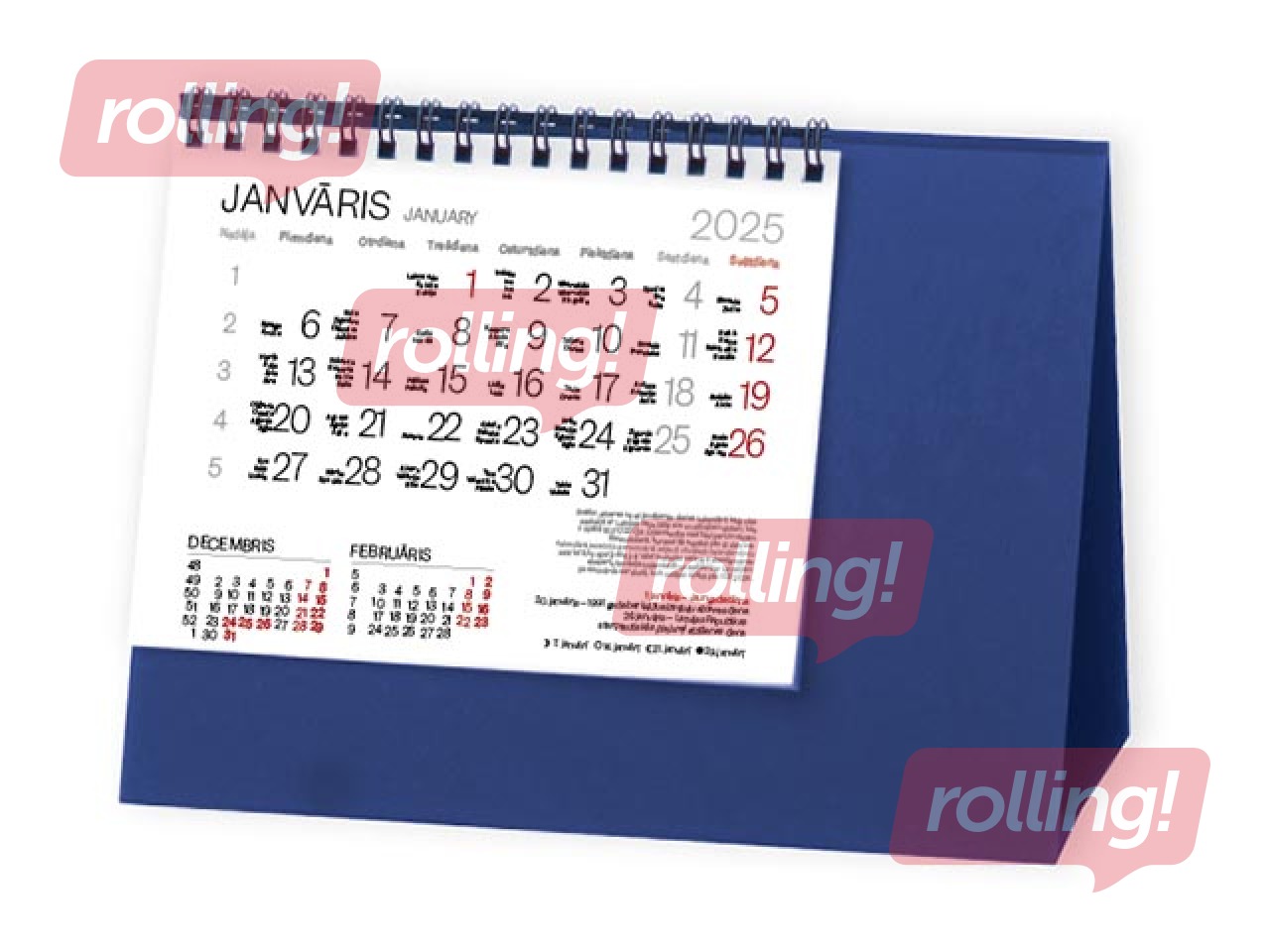 12 lapas un bieza, melna kartona piramīdveida pamatne. Trīs mēneši lapā (iepriekšējais, kārtējais un nākamais), iesiets ar spirāli. Uz melnas kartona pamatnes iespējams zelta, sudraba vai citas krāsas logotipa uzspiedums. ir pieejamas ar sarkanu vai zelta krāsas spirāli.