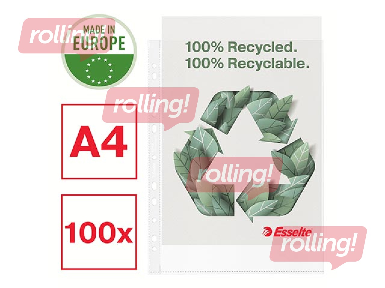 Dokumentu kabatiņas Esselte A4, matētas, 70 mic., 100 gab.