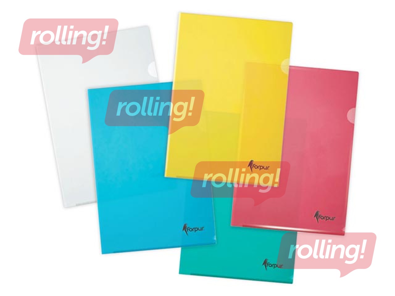 Mape - stūrītis glancēta. A4 formāts. Paredzēta dokumentu glabāšanai. Vaļēja augšeja un sānu mala. Izgatavots no polipropilena. Blīvums 180 mic.