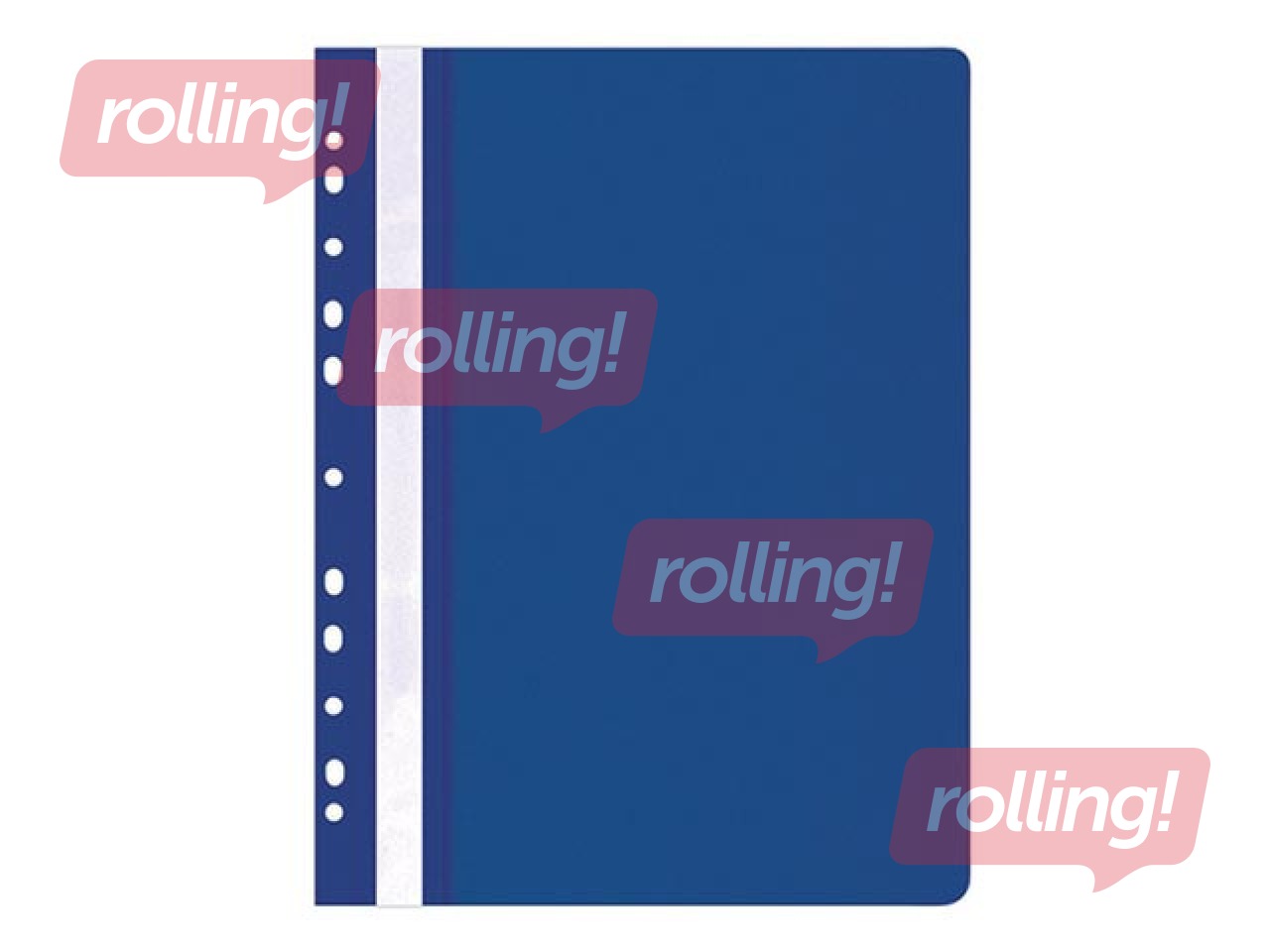 Mape ātršuvējs iešujama, A4 formāts, tumši zila. Ar caurspīdīgu augšējo vāku. Izgatavota no polipropilēna. Caurumu skaits: 11.