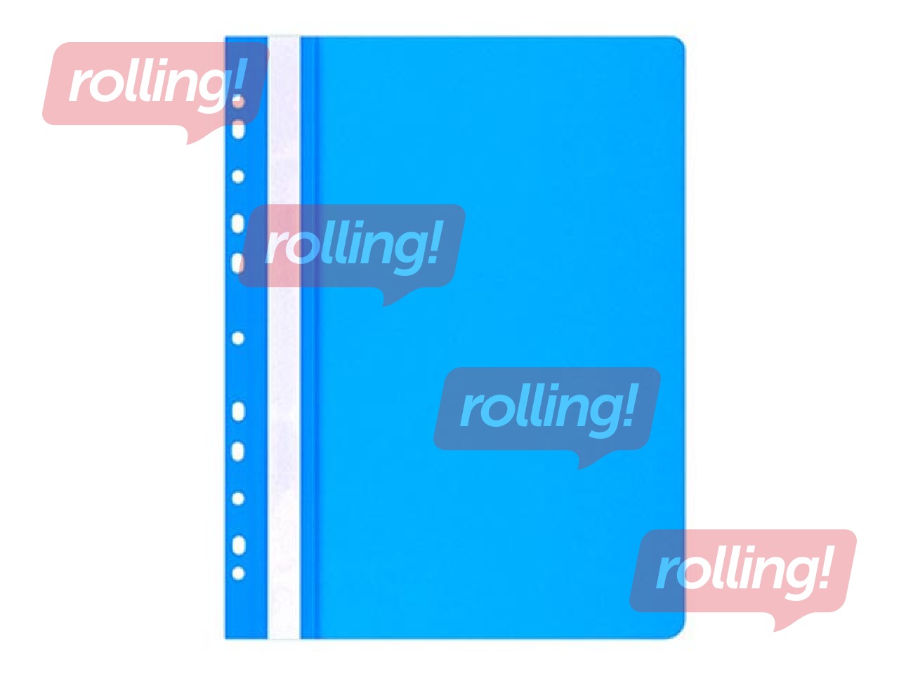 Mape ātršuvējs iešujama, A4 formāts, zila. Ar caurspīdīgu augšējo vāku. Izgatavota no polipropilēna. Caurumu skaits: 11.