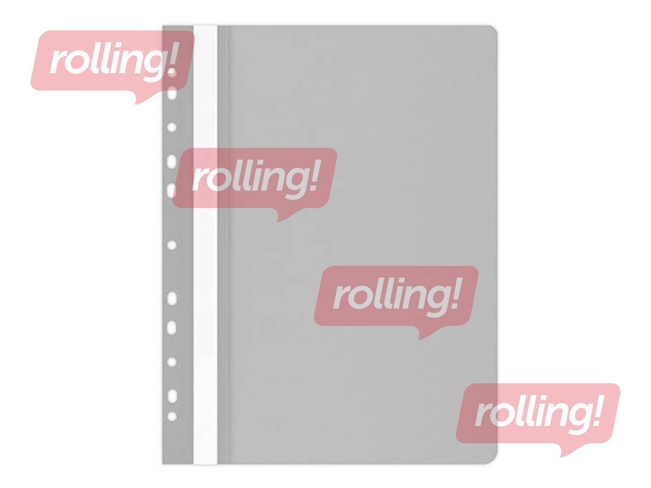Mape ātršuvējs iešujama, A4 formāts, pelēka. Ar caurspīdīgu augšējo vāku. Izgatavota no polipropilēna. Caurumu skaits: 11.