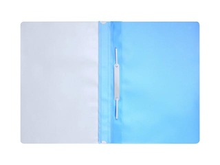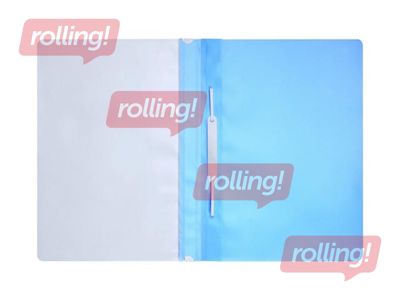 Mape - ātršuvējs. Caurspīdīgs virsējais vāks (110 mic) un pasteļzils aizmugurējais vāks ( 180 mic). A4 formāts.