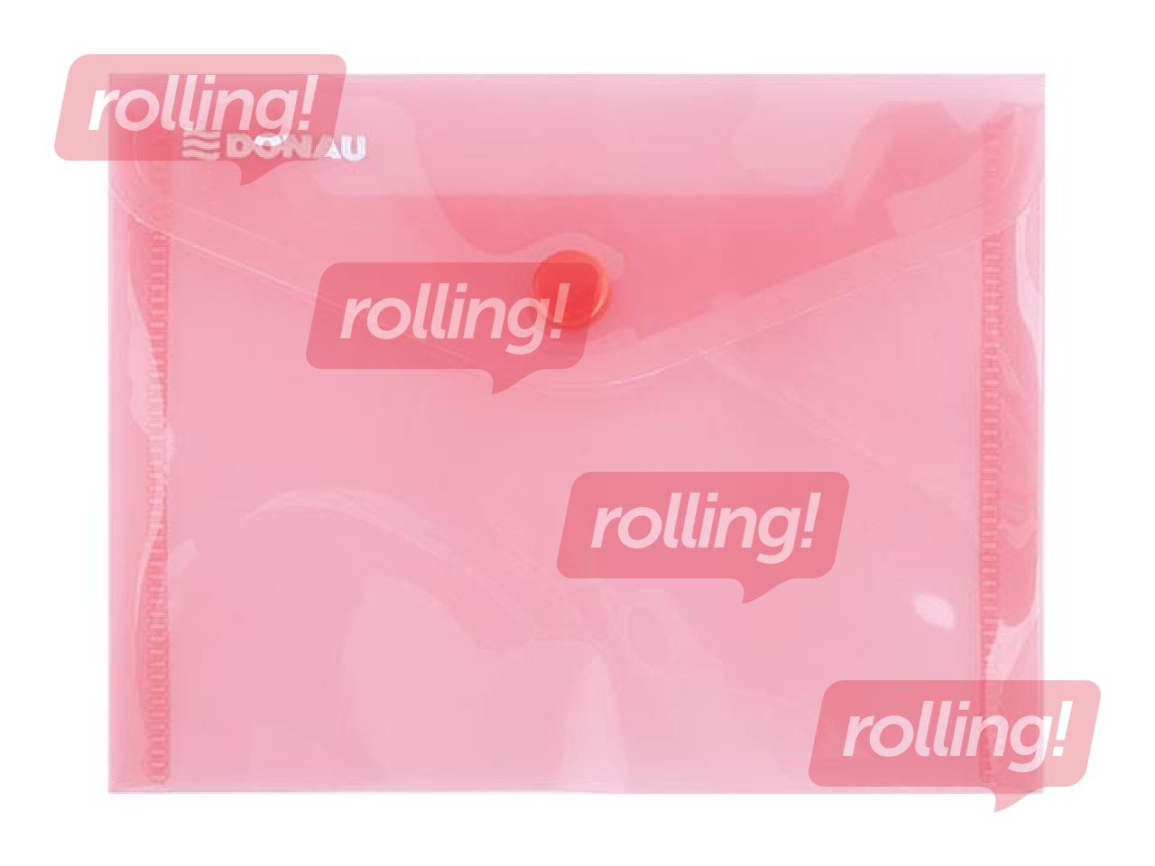 Mape - aploksne ar spiedpogu. A6 formāts. Izgatavota no caurspīdīga polipropilēna, 180mic. Izmērs: 150x115mm. Krāsa: sarkana.