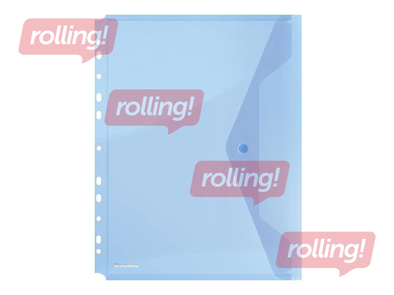 Mape - aploksne ar spiedpogu. A4 formāts. Ar caurumiem- ērtai ievietošanai jebkurā mapē. Izgatavota no caurspīdīga polipropilēna, 200mic. Krāsa: zila.