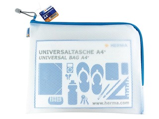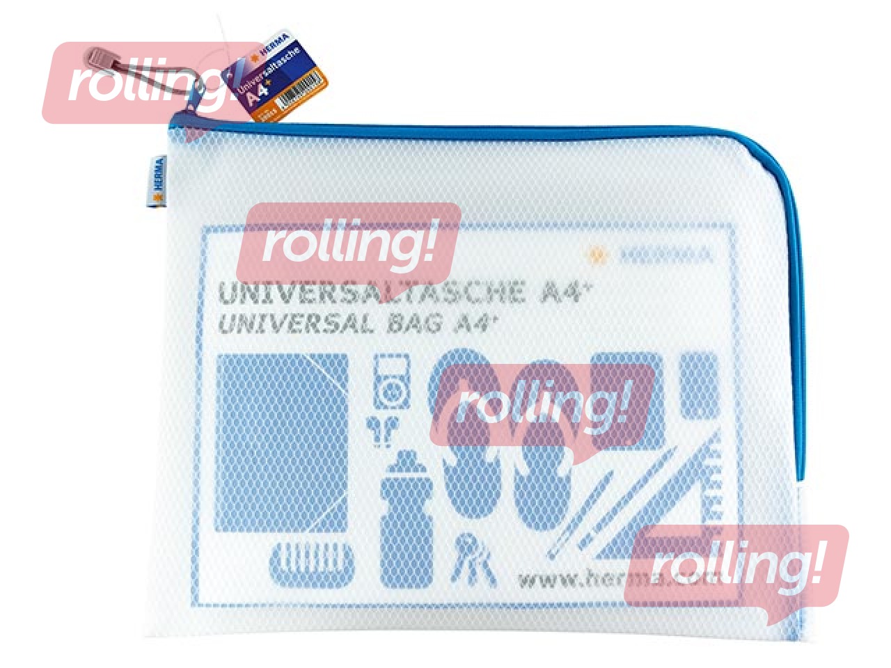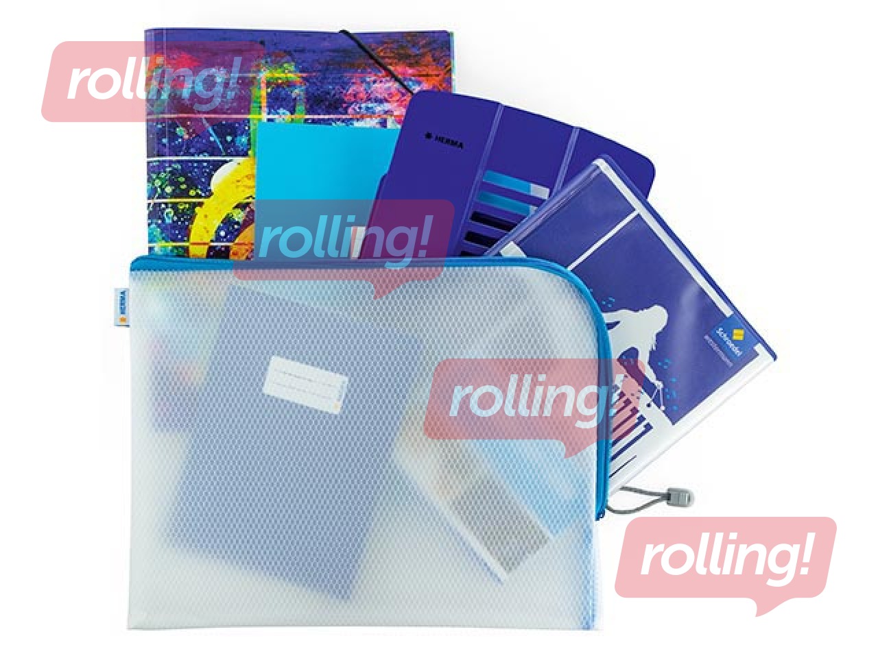Mape - slēdzama Herma, A4+, caurspīdīga ar zilu rāvējslēdzēju