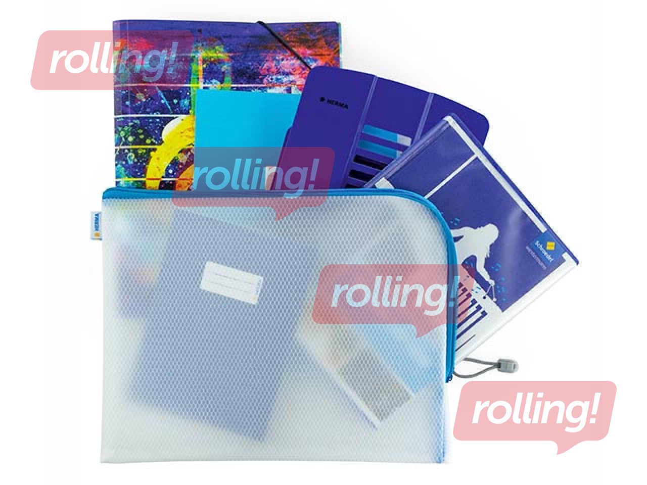 Mape A4+ ar praktisku stūra rāvējslēdzēju, izmērs: 36x28 cm.