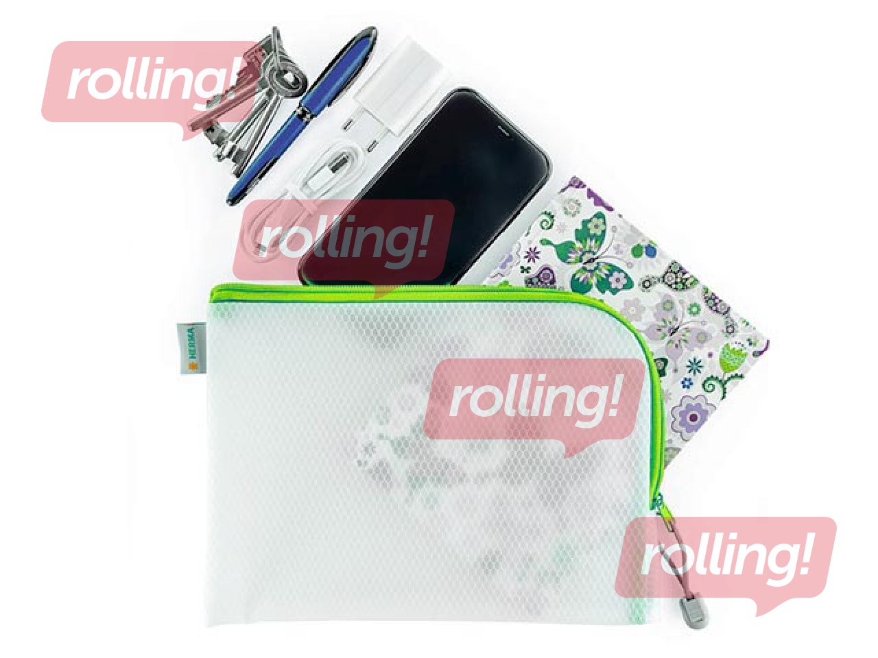 Mape - slēdzama Herma, A5, caurspīdīga ar zaļu rāvējslēdzēju