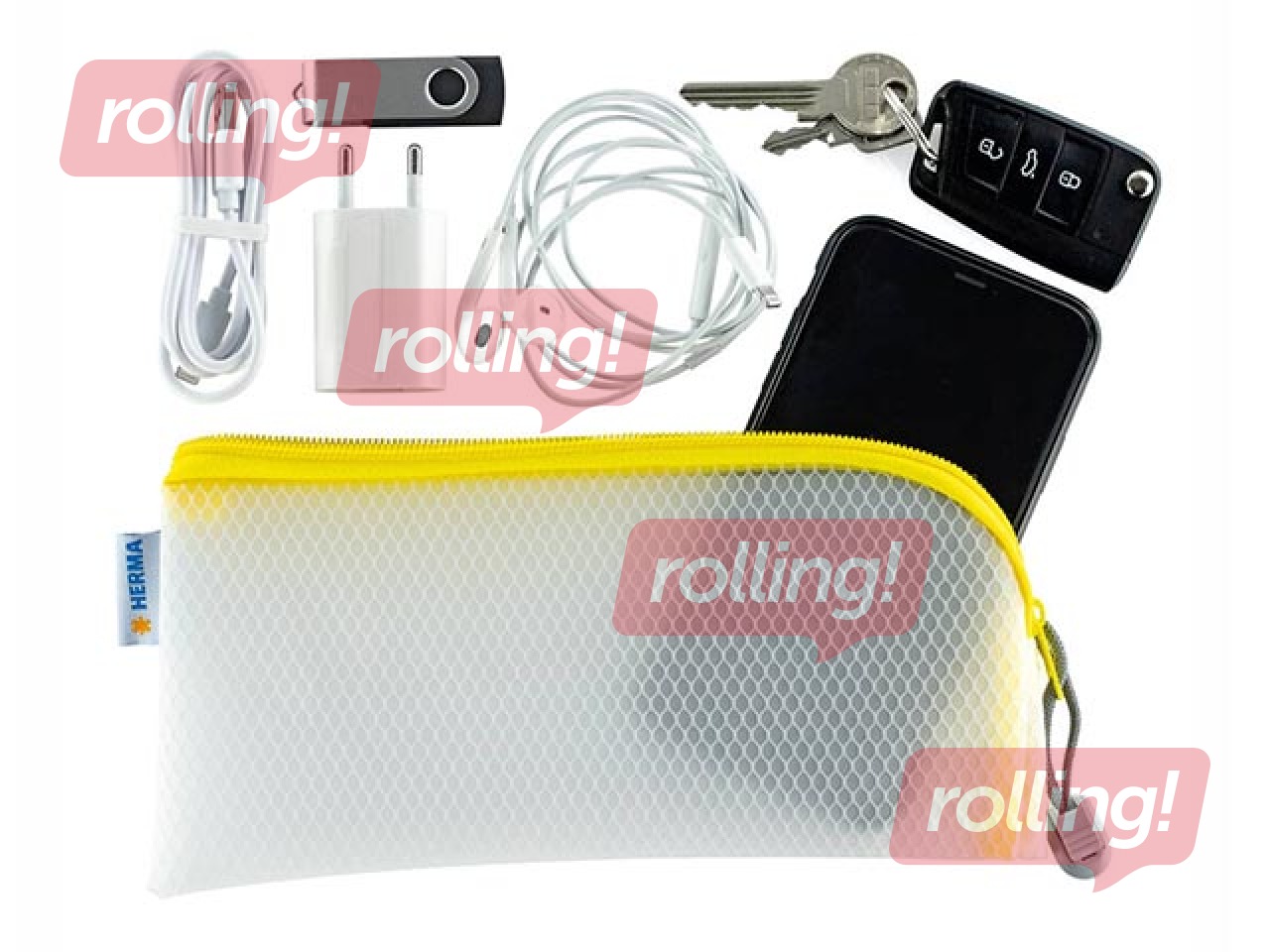 Mape - slēdzama Herma, 23x11 cm, caurspīdīga ar dzeltenu rāvējslēdzēju