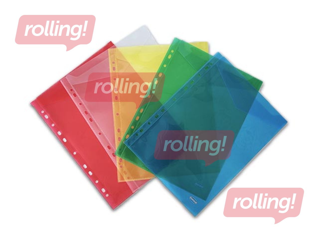 Vertikāla mape aploksnes formā ar perforāciju ir piemērota dokumentu uzglabāšanai un organizēšanai. Izgatavota no 0.18mm bieza plastmasas materiāla, tā nodrošina izturību un aizsardzību pret mitrumu un netīrumiem. Perforācija ļauj to viegli ievietot gredzenveida mapēs, savukārt dzeltenā krāsa piešķir tai izteiksmīgu izskatu. Ideāli piemērota lietošanai darbā birojā un skolās.