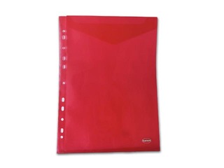 Vertikāla mape aploksnes formā ar perforāciju ir piemērota dokumentu uzglabāšanai un organizēšanai. Izgatavota no 0.18mm bieza plastmasas materiāla, tā nodrošina izturību un aizsardzību pret mitrumu un netīrumiem. Perforācija ļauj to viegli ievietot gredzenveida mapēs, savukārt sarkanā krāsa piešķir tai spilgtu un pamanāmu izskatu. Ideāli piemērota lietošanai birojā un skolā.