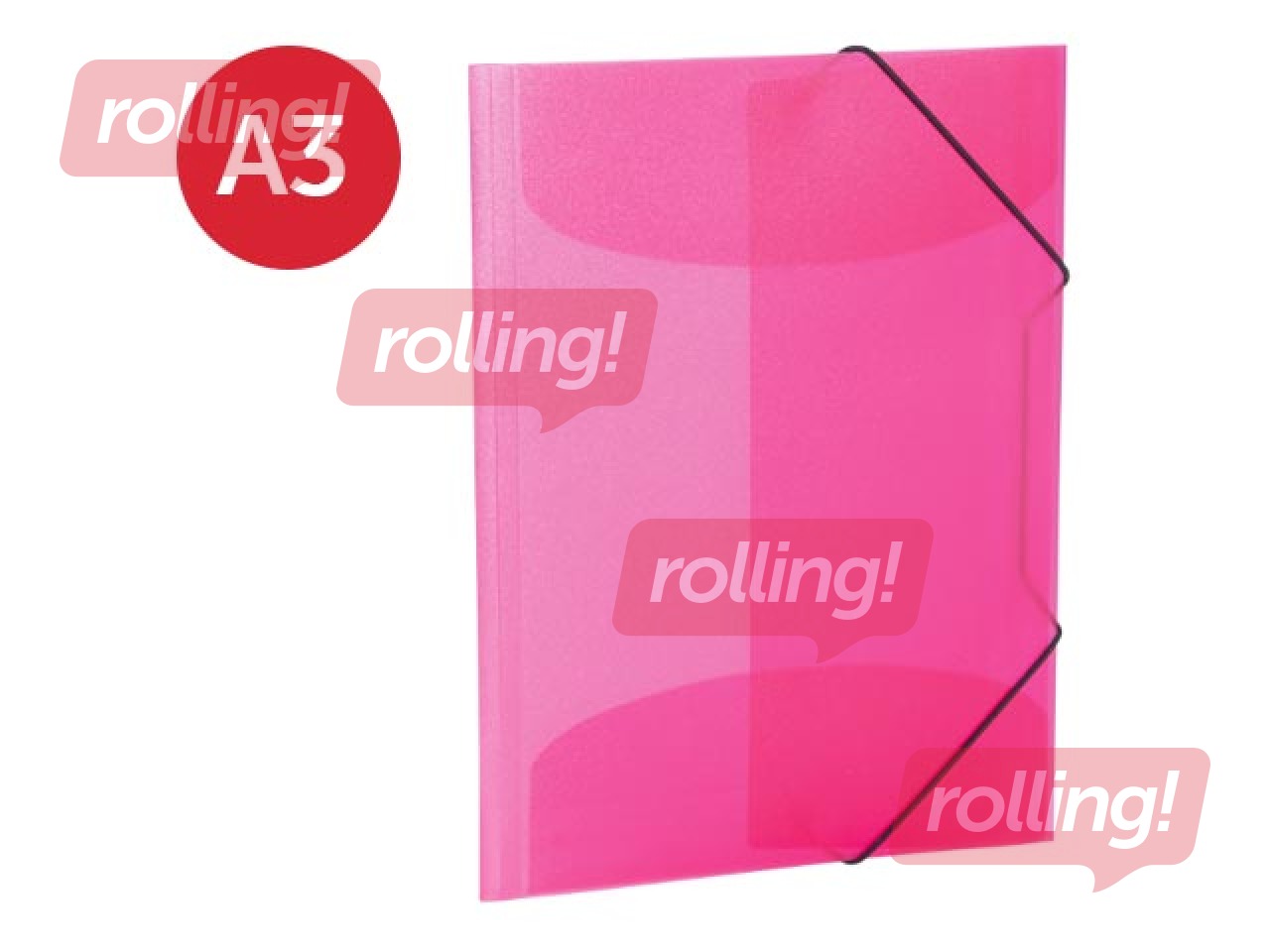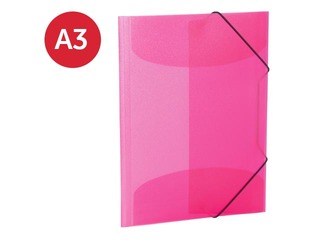Elastīga mape ar gumiju un 3 atlokiem. Izgatavota no izturīga polipropilēna, mitri noslaukāma, izmērs A3 (297 x 420 mm)