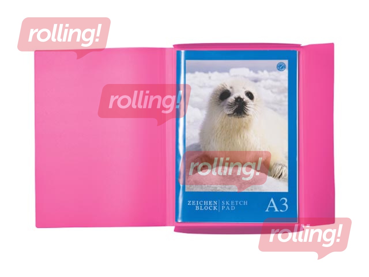 Mape ar 3 atlokiem un gumijām Herma, A3, PP, rozā