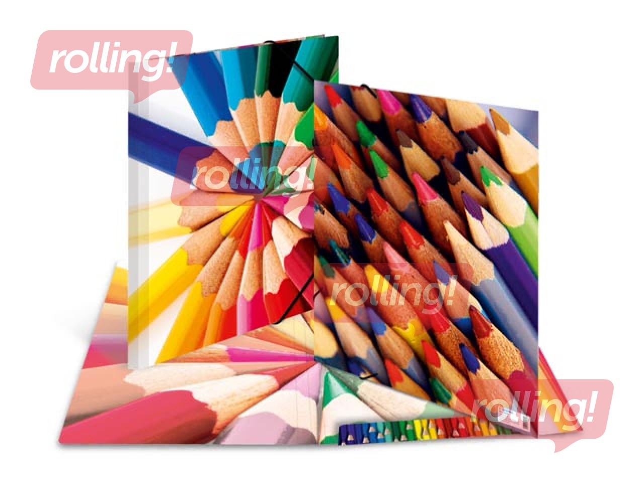 Elastīga un dizainiska A3 kartona mape ar gumijām. Izgatavota no izturīga kartona, ar elastīgām stūra gumijām un trim iekšējiem atlokiem.