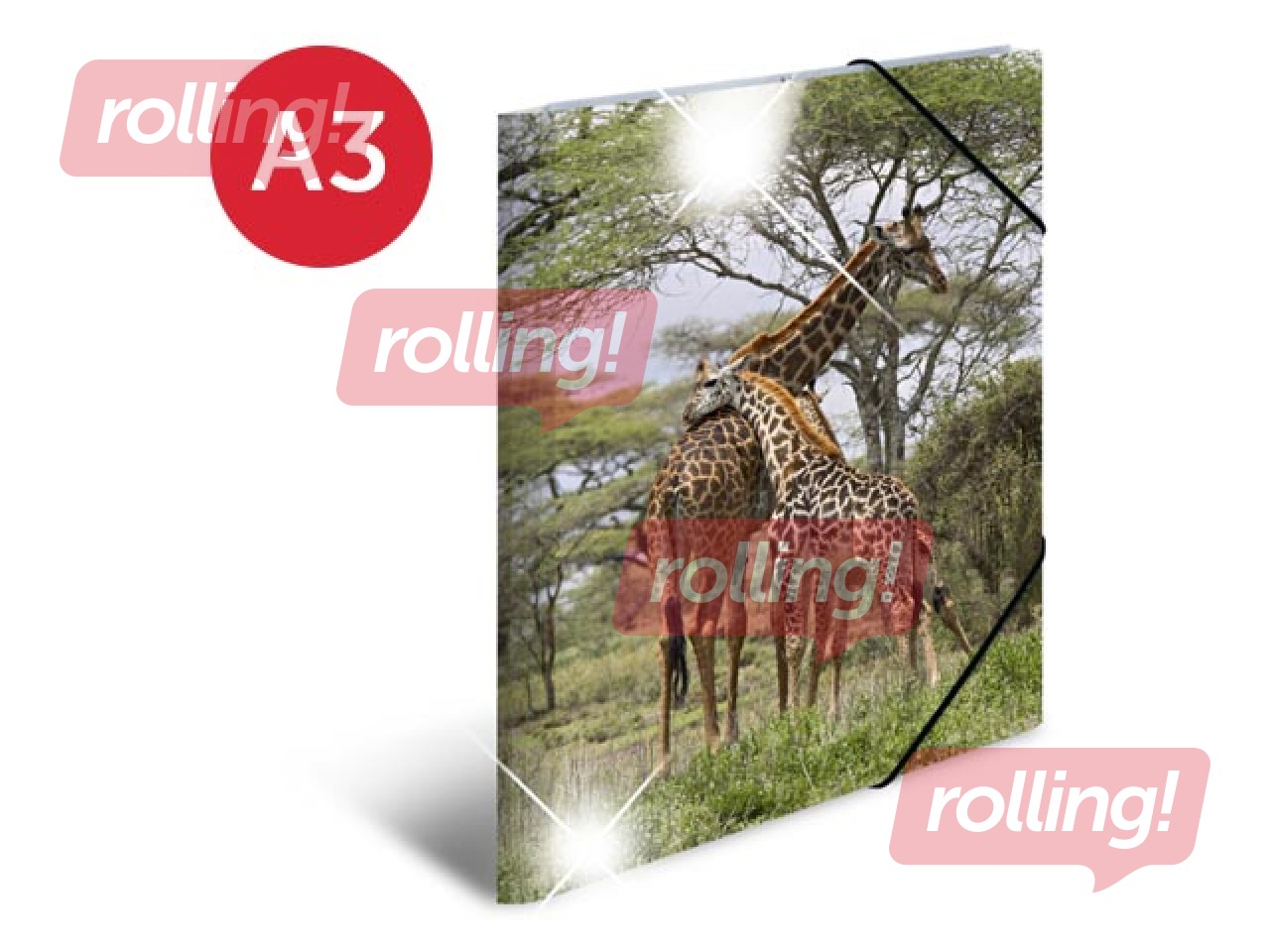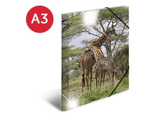 Mape ar 3 atlokiem un gumijām Herma, dzīvnieku apdruka, A3, PP glancēta