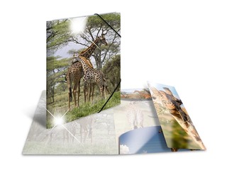 Elastīga, glancēta mape ar dzīvnieku apdruku. Mape ar gumiju un 3 atlokiem. Izgatavota no izturīga polipropilēna, mitri noslaukāma, izmērs A3 (297 x 420 mm).