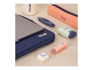 Tumši zilā portatīvā datora somiņa. 430 kopš 1918. gada kolekcija, iedvesmota no oriģinālajām krāsām un dizaina, kas radīts, pamatojoties uz MILAN dzēšgumijām, kas tiek ražotas Spānijā kopš 1918. gada.
