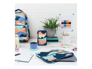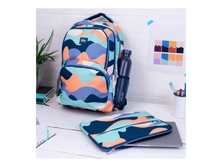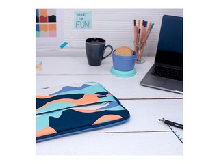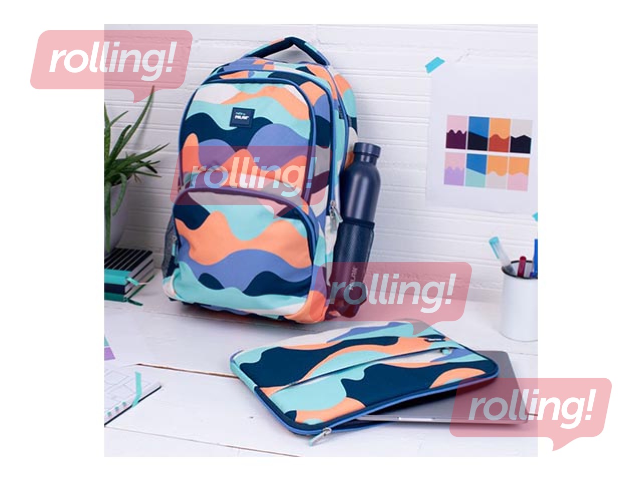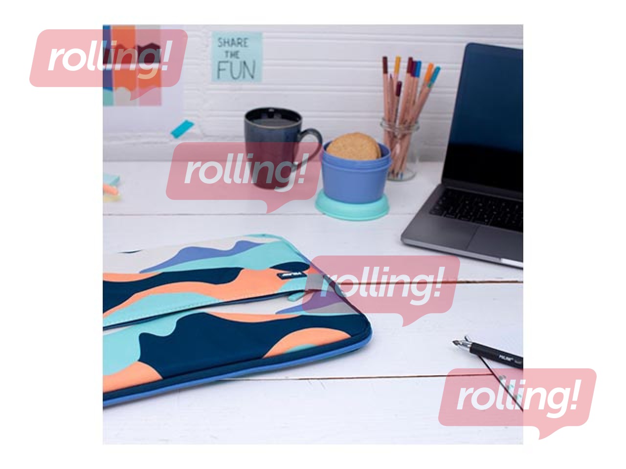 Portatīvā datora somiņa. The Fun sērija, zilajos toņos. Kolekcija, kas iedvesmota no prieka un baudas, kas rodas radošā procesa laikā. Ar unikālu krāsu paleti, dažādās kolāžas formas kļūst par šīs kolekcijas rakstu. Priekšējais kabata. Auduma sastāvs: poliestera ārējais audums un iekšējais oderējums.