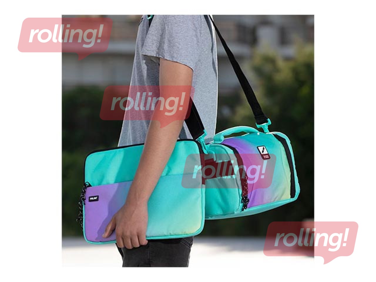 Gradienta krāsu kombinācija, iedvesmota no saulrieta, ar melniem un baltiem akcentiem. Rāvējslēdzēja vilkējs ar auklu un priekšējais kabata. Samta iekšējais oderējums, kas aizsargā datoru no iespējamiem skrāpējumiem. 'Ripstop' ārējais audums: viegls un izturīgs pret plīšanu un saplēšanu. Izmanto īpašu tehniku, kas aust biezus stiprinājuma diegus regulāros attālumos, veidojot krustenisku rakstu. Auduma sastāvs: poliestera ārējais audums un iekšējais oderējums.