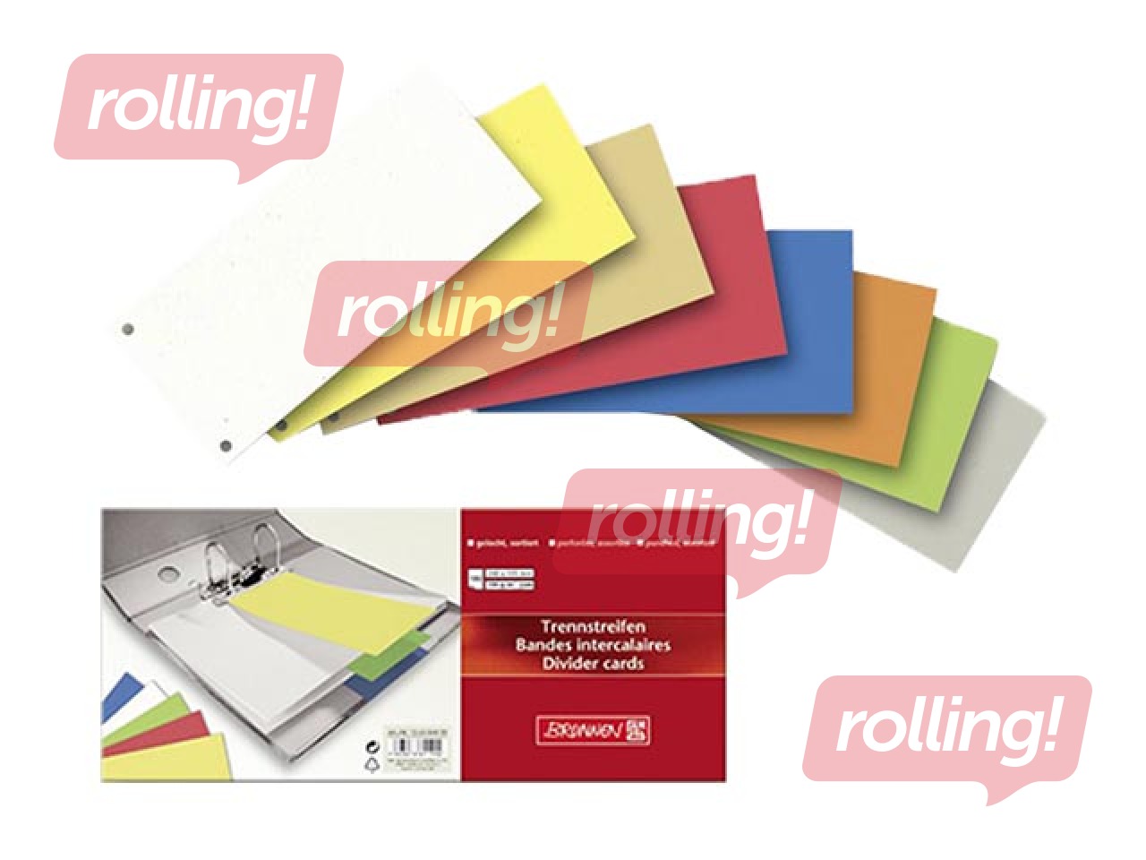 Krāsainas 190 g/m2 kartona starplapas dokumentu sakārtošanai. Izmērs: 10.5 x 24 cm. Iepakojumā 100 lapas ar 2 caurumiem ievietošanai mapēs ar riņķiem vai reģistros.