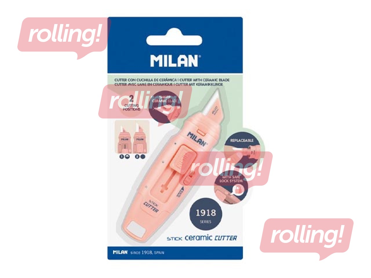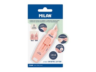 Nazis ar nomaināmu keramikas asmeni. STICK dizains, 430 since 1918 kolekcija. Asmens ar aizsargu un drošības fiksācijas sistēmu. Bīdāma poga ar divām pozīcijām. Kompakts izmērs, ērti ievietojams kabatā. Pateicoties ergonomiskajam dizainam, lieliski piemērots rokdarbiem vai paku atvēršanai. Īsais keramikas asmens griež dažādus materiālus. Ir caurums, lai varētu piekārt. Pieejami nomaināmi keramikas asmeņi. 430 since 1918 kolekcija ir iedvesmota no MILAN dzēšgumiju oriģinālajām krāsām un dizaina, kas tiek ražotas Spānijā kopš 1918. gada.