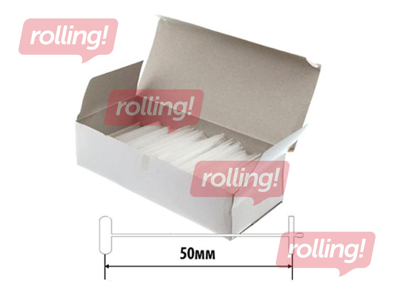 Baltas plastmasas savienotāji jeb tekstilskavas REGULAR, kas paredzētas tekstilpistoles modelim Motex MTX-05R.